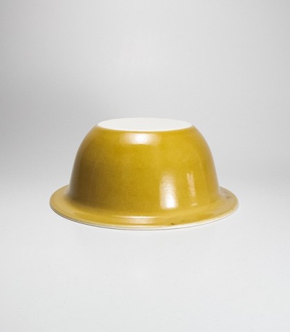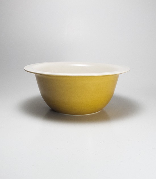 Tazón para disfrutar de una sopa calientita o un delicioso cereal con leche. Está recubierto con un esmalte brilloso amarillo de manganeso.