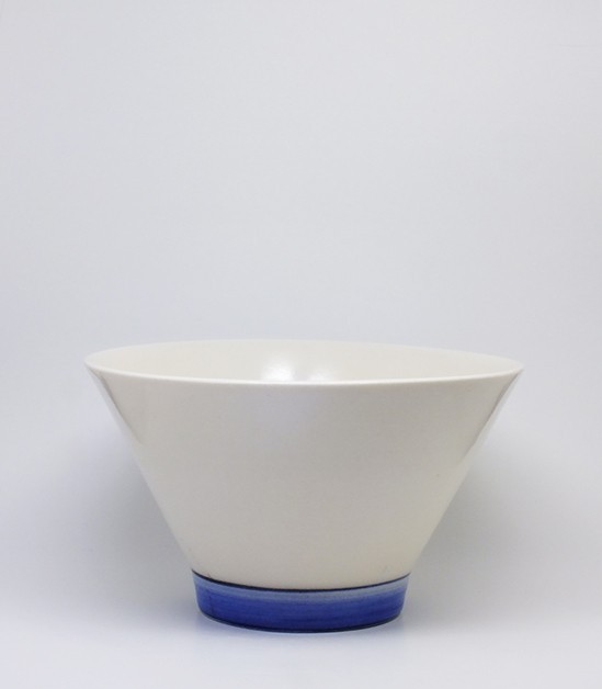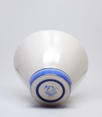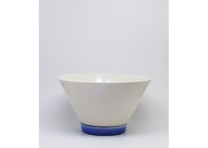 Tazón de porcelana con base azul cobalto. Tamaño perfecto para mucho postre o un poquito de sopa.